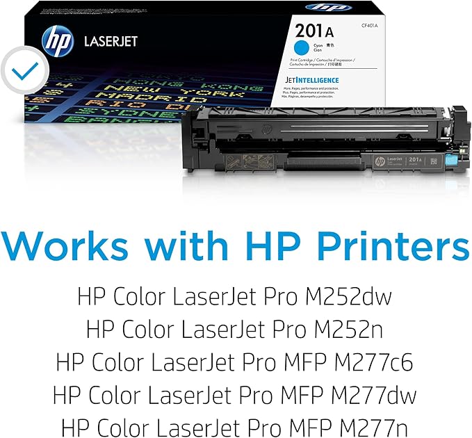 The HP 201A Cyan Original LaserJet Toner Cartridge CF401A is designed for lawful and ethical use in compatible HP LaserJet printers. It meets HP’s quality, safety, and environmental standards and supports responsible color printing in office and home environments.
