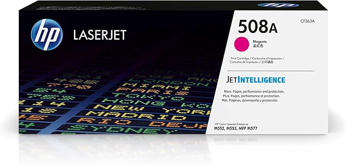 The HP 508A Magenta LaserJet Toner Cartridge (CF363A) is a reliable solution for businesses that require vibrant color output and consistent performance. Its high page yield, ease of use, and dependable results make it ideal for maintaining productivity and delivering professional-quality prints.