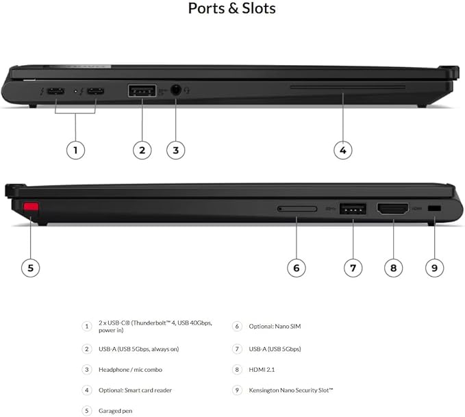The Lenovo ThinkPad X13 Gen 5 Ultra 7 is intended for lawful professional and educational use. It supports secure business practices and complies with modern enterprise computing standards.