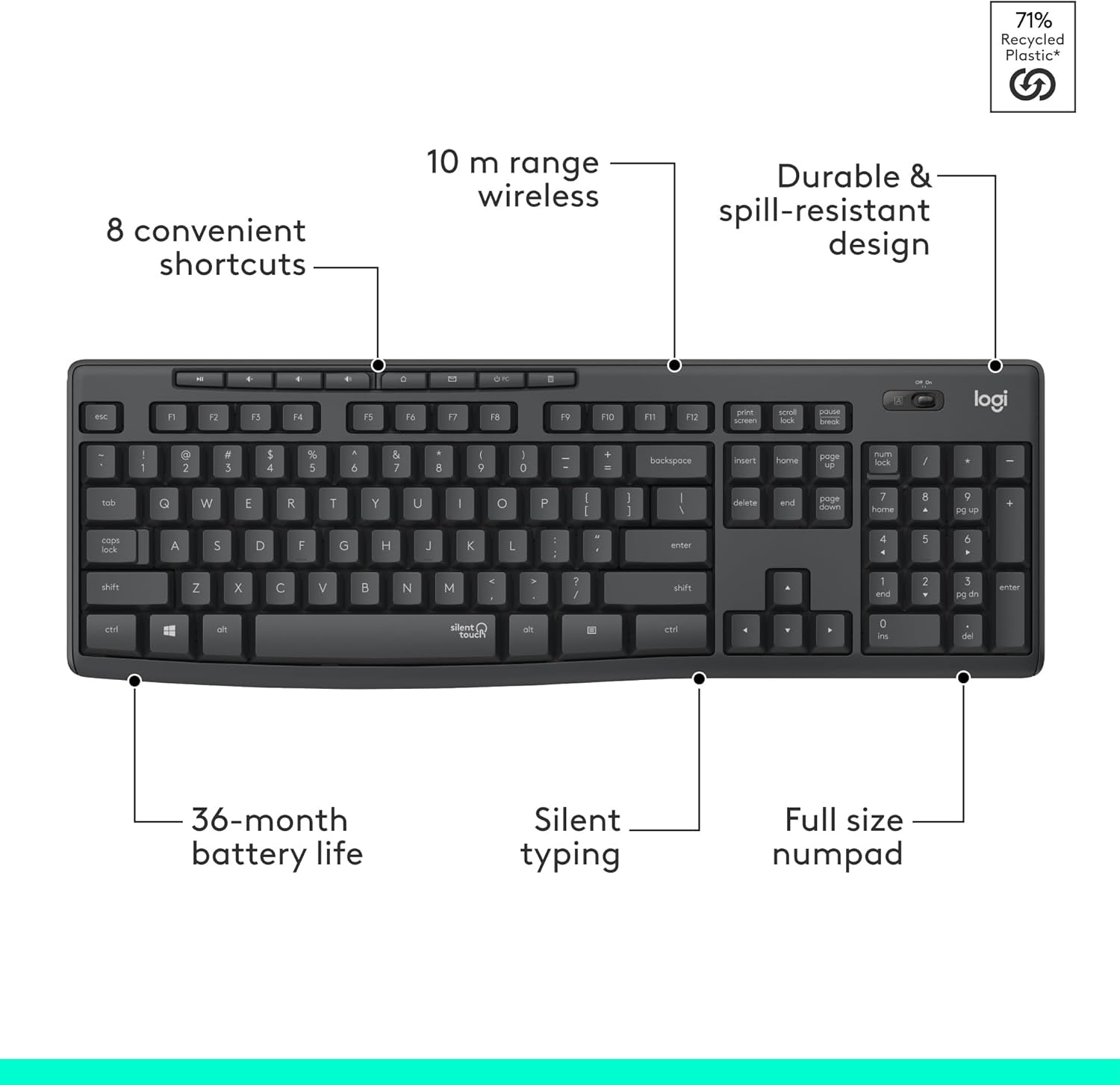 Logitech MK295 Wireless Keyboard and Mouse Combo – Quiet 2.4GHz Wireless Set
