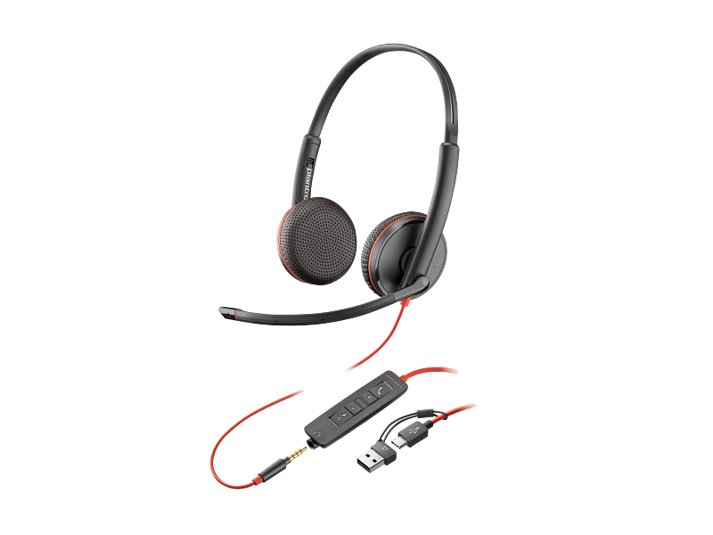 Poly Blackwire 3225 Stereo USB-C Headset + 3.5mm Plug + USB-C/A Adapter (Bulk)