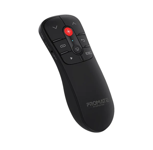 The Promate 2.4GHz Wireless Presenter with Laser Pointer is a practical tool for delivering professional presentations with ease. With reliable wireless connectivity, intuitive controls, and a built-in laser pointer, it enables presenters to maintain confidence, mobility, and engagement throughout their sessions.