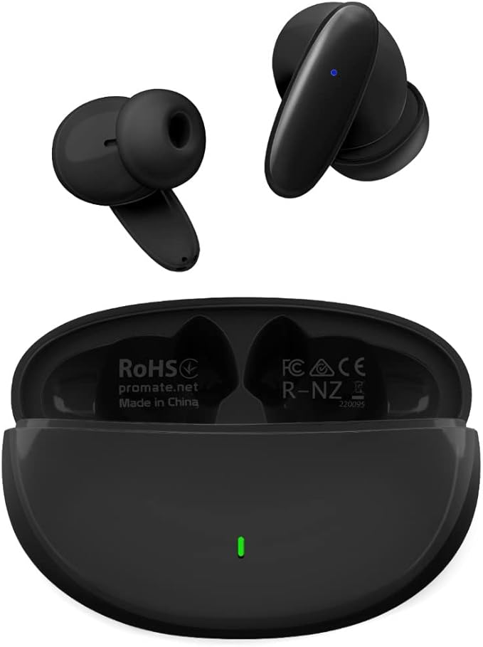 The Promate Compact Bluetooth v5.1 TWS IPX5 Earphones, Black offer reliable connectivity with minimal interruptions.